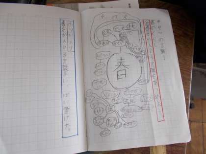 今日の国語科「春のくらし」の学習では,春を感じる言葉をできるだけ多く集めました。明日の授業では,今日の集めた言葉から書くことを選び,経験したことや想像したこと,それに対する思いや考えなどを書きたいと思います。