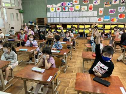 はっぴょうするときには ぴんとてをあげて きくときには はっぴょうするともだちのほうにおへそをむけてきくことができるようになってきました。