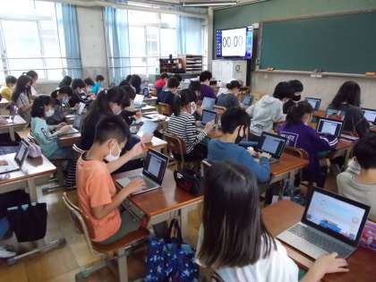 学習の合間には,タブレットを使ってタイピング練習をしています。子どもの上達の速さには本当に驚かされます。