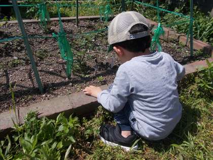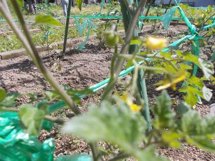 4月にうえたミニトマトの苗を見てみると,花びらがとれ,