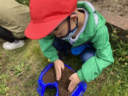 1ねん あさがおのたねをまきました。