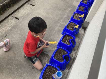 はやくめがでないかなと こころまちにしながら みずをやっています。