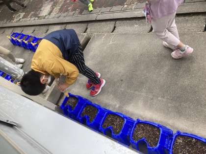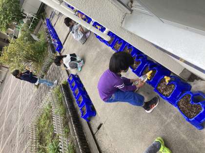 ちゅうかんやすみのちゃいむとともに こどもたちはみずやりをしに