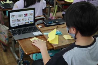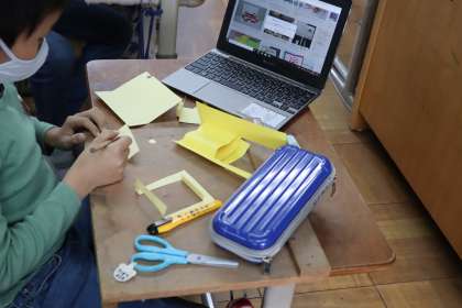 飛び出すしかけの工夫にはどのようなものがあるのか,タブレットを使って,手本を参考にしながらいろいろなしかけを試しに作ってみました。