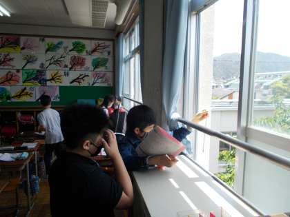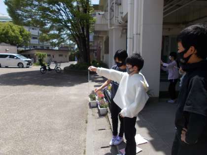 「夏をすずしくさわやかに」の学習で少し早いですが,日かげと日なたの気温の差を測りにいきました。
