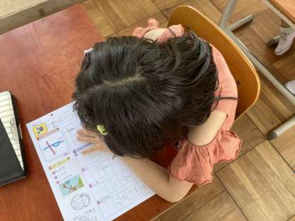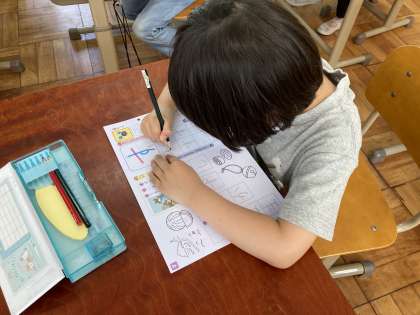 「す」をかくのは とてもむずかしそうでした。