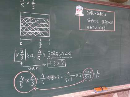 図を使って,分数×分数の計算の仕方について考えました。