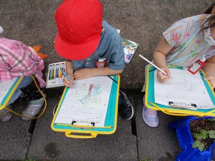 あさがおのめのかんさつをしました。かんさつのときには ちかくでみたり さわったり においをかいだりしました。