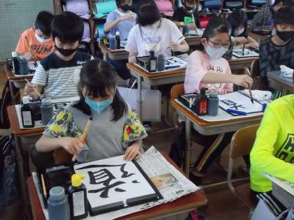 書写の「道」を清書しました。先週に練習をしていたこともあって子どもたちは納得のいく作品を仕上げていました。