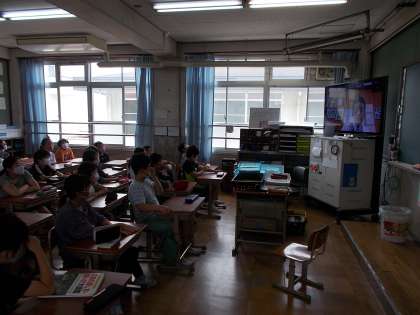 今月もオンラインで朝会をおこないました。校長先生からは「ワクチン」についてのお話をしていただきました。