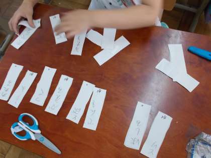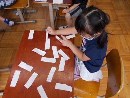 それをきってうらがえし そこからえらんだ2まいが いみのあうぶんになっていれば 1ぽいんとげっと というげえむをしました。