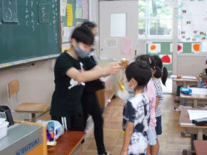 だいひょうで 3にんのおともだちが めだるをくびにかけてもらいました。
