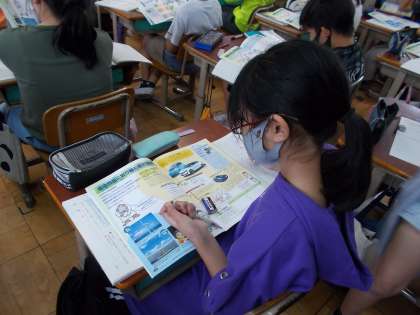 国語科では自分が興味をもったことについて調べ,その文章を引用する学習をしています。本日は,調べる学習をし,文章を引用していました。次回は引用した文章を自分の報告書にまとめていく学習です。