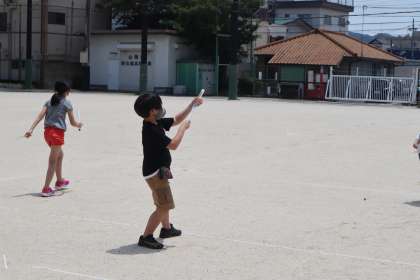 空気についての学習を終えた後,空気の性質を使って,空気鉄砲で遊びました。