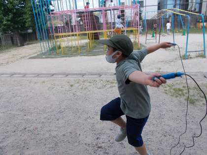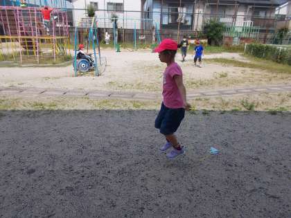 ひまわり学級では,生活単元の時間になわとびを練習しています。