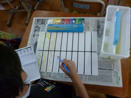 点々を描いたり,波線を描いたり,いろいろな色で描きました。