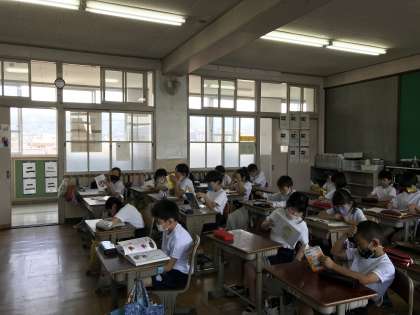 毎朝の帯時間に朝学習や朝読書を行っています。この日は朝読書の日だったので朝読書を行いました。どの子も夢中になって本読み,読書を楽しんでいます。また,読んだ本をしっかりと読書ノートに記録をすることもできました。