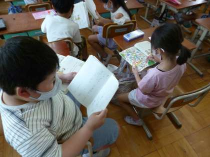 国語の学習で,お互いがつくった迷子のアナウンスを聞いて,