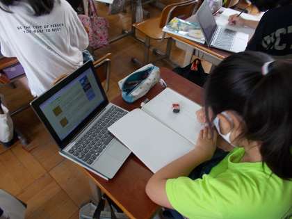 「みんなが過ごしやすい町へ」の学習で暮らしの工夫を調べています。本日は,タブレットを使って調べました。