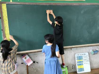 いつも一生懸命掃除に取り組んでいます。黒板もすみずみまできれいにするように心がけています。