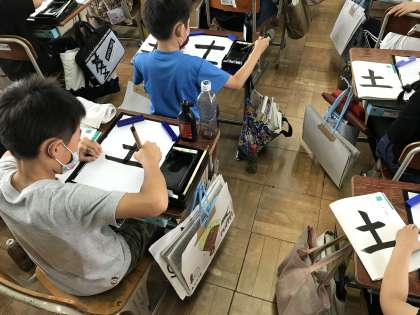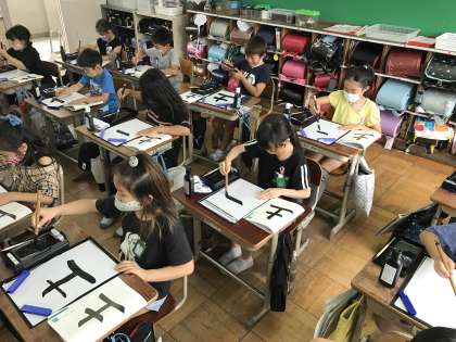 練習用紙で練習した後は清書です。緊張している子も多かったですが,みんな一生懸命書き上げました。