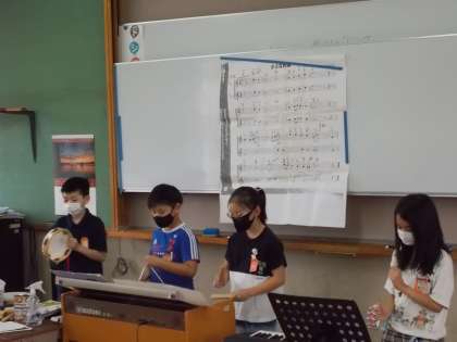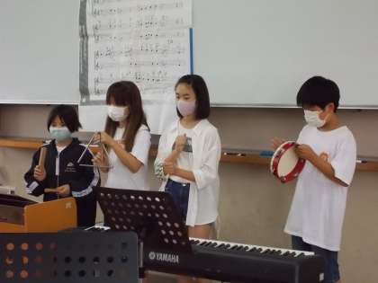 リズムを工夫するグループもあれば,音を鳴らすタイミングを工夫するグループ,音の強弱を工夫するグループがあり,どのグループも素晴らしい発表でした。