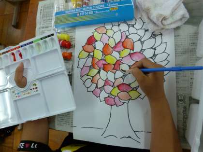 いろいろな色の組み合わせで「大きな木」を塗りました!
