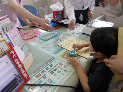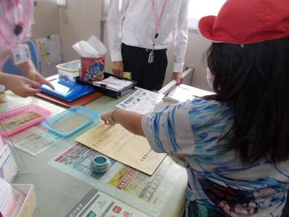 書いた手紙を持って,郵便局へ行きました。