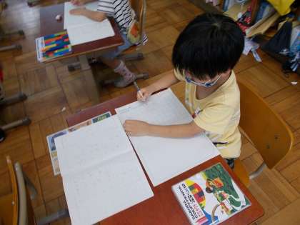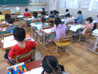 げつようびは がようしにかき ともだちとこうりゅうをします。