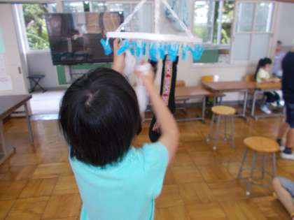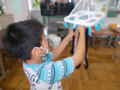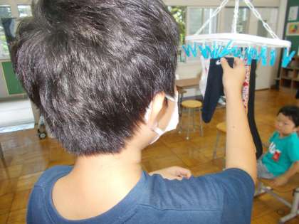 洗濯もののしわをのばし,形を整えて干しました。