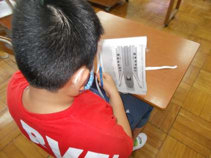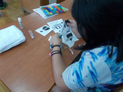 自立活動の時間に,はさみとのりを使って,手先の巧緻性を高める学習をしました。