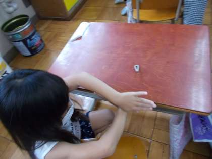 つくえのたてとよこ どちらがどれだけ ながいのか かんがえました。