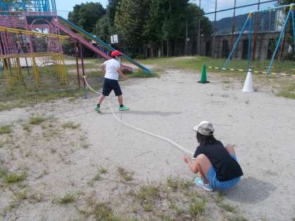 秋分の日が過ぎ,朝が少し涼しくなってきました。ひまわり学級では,生活単元の時間に大縄しています。