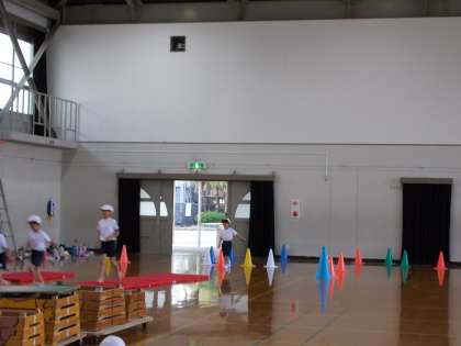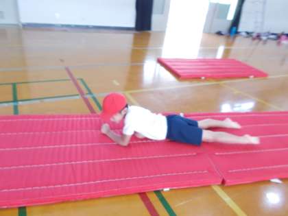 リーダーのまねをしながら とんだり はったり しました。