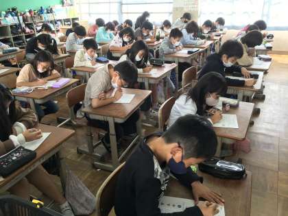 山科警察署の方に来ていただき,教室で自転車の安全な乗り方についてお話していただきました。最後には実際にテストも受けました。結果は,後日自転車免許証とともに返ってきます。自転車は,きちんと乗らないと命を落とすことにもなれば,反対に命を奪うことにもなります。今一度,きちんと確かめてほしいです。