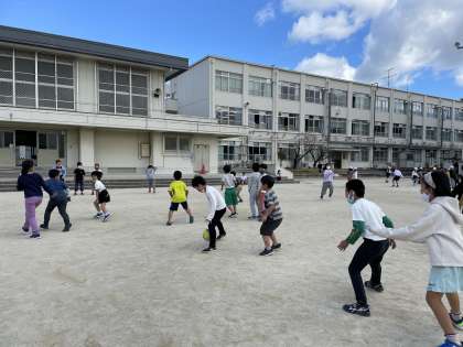 休み時間,子どもたちは元気にドッジボールをして遊んでいます!!