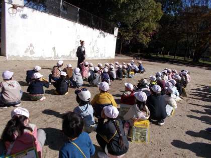 学校のそとに はじめて 出て ひがしのこうえんで あき見つけをしました。
