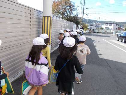 いきかえりは しずかに 2れつであるくことを いしきすることができました。