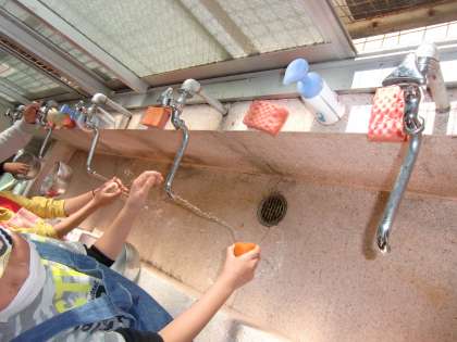 実習2回目は,『ゆでたまご』『コンビネーションサラダ』を作りました。調理道具を準備し,食材を丁寧に洗いました。卵が割れないようにドキドキしながら洗っている子どもたちでした。