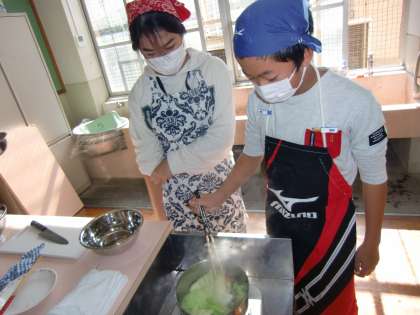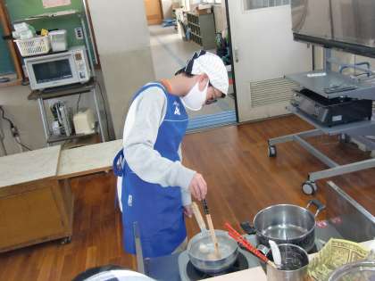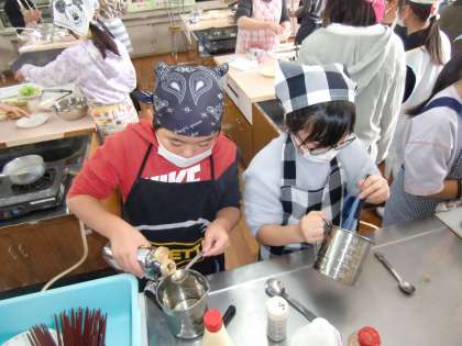食材によって茹で時間が違うので,硬さを確認しながら茹でました。また,グループで協力しながら茹でている間にドレッシングを作ったり,調理道具を洗ったりしていました。