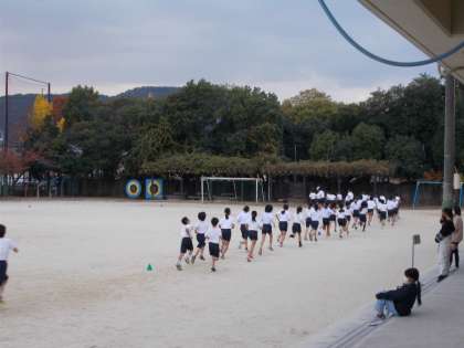 本日より,学年陸上が始まりました。今日は,4つのグループに分かれ,距離と速さを意識して走りました。