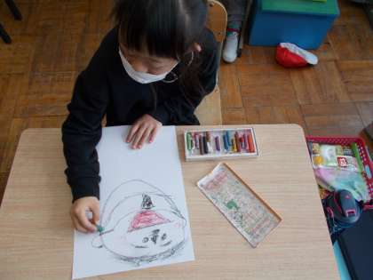 生活単元の時間に,サプライズで先生の似顔絵や好きなイラストを描きました。
