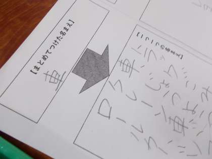 おみせやさんごっこにむけて まとめてつけた名まえや 一つ一つの名まえをかんがえています。