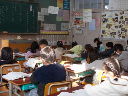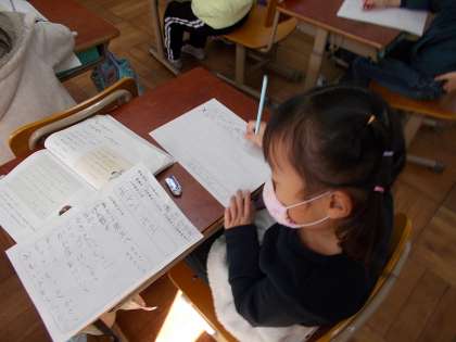 学校のよう子をしらせるために 手がみをかいています。
