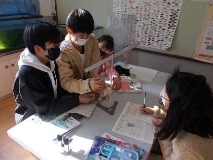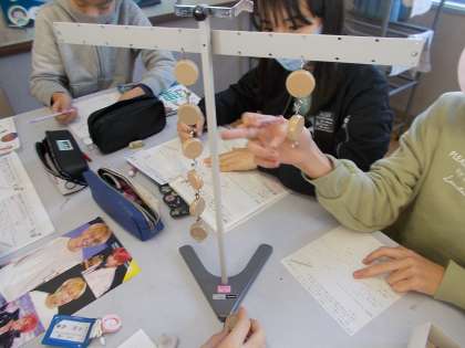 てこのはたらきの学習をしています。実験をしている中で,つり合う規則性に気付いたようです。おもりとめもりに関係があるようです・・・。
