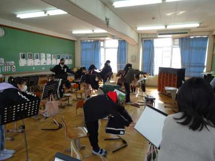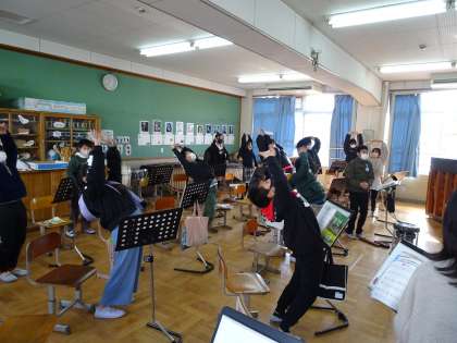 歌を歌う前に,音楽の時間には体操をしています。