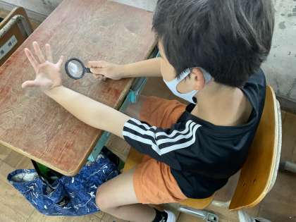 新しくスタートした理科の学習では,虫めがねを使って学習を進めました。みんな虫めがねを使うと見えにくいものでもはっきり見ることができ,とても驚いている様子でした。次回の学習では,外に出て,虫めがねを使っていろんな生き物を観察していきます。