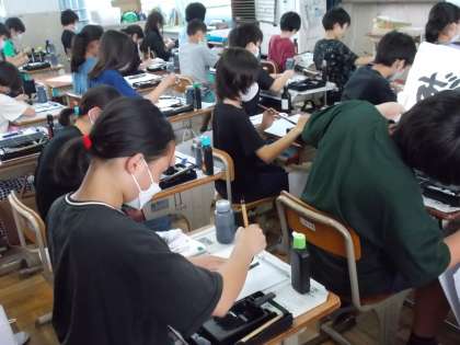 今年度の書写が始まりました。第1回目は「歩む」です。新たな一歩,大きな一歩という意味がこもっています。子どもたちは,思いを込めて書いていました。