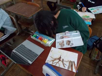 図工では,自分の好きな場所をテーマに絵画を作成しています。今日は,本番に向けて練習をしました。本番に向けて色付けや配置をしっかり確認することができました。