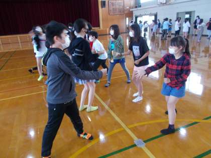 ペアの人とジャンケンを3回して勝った人が決めのポーズをしました。